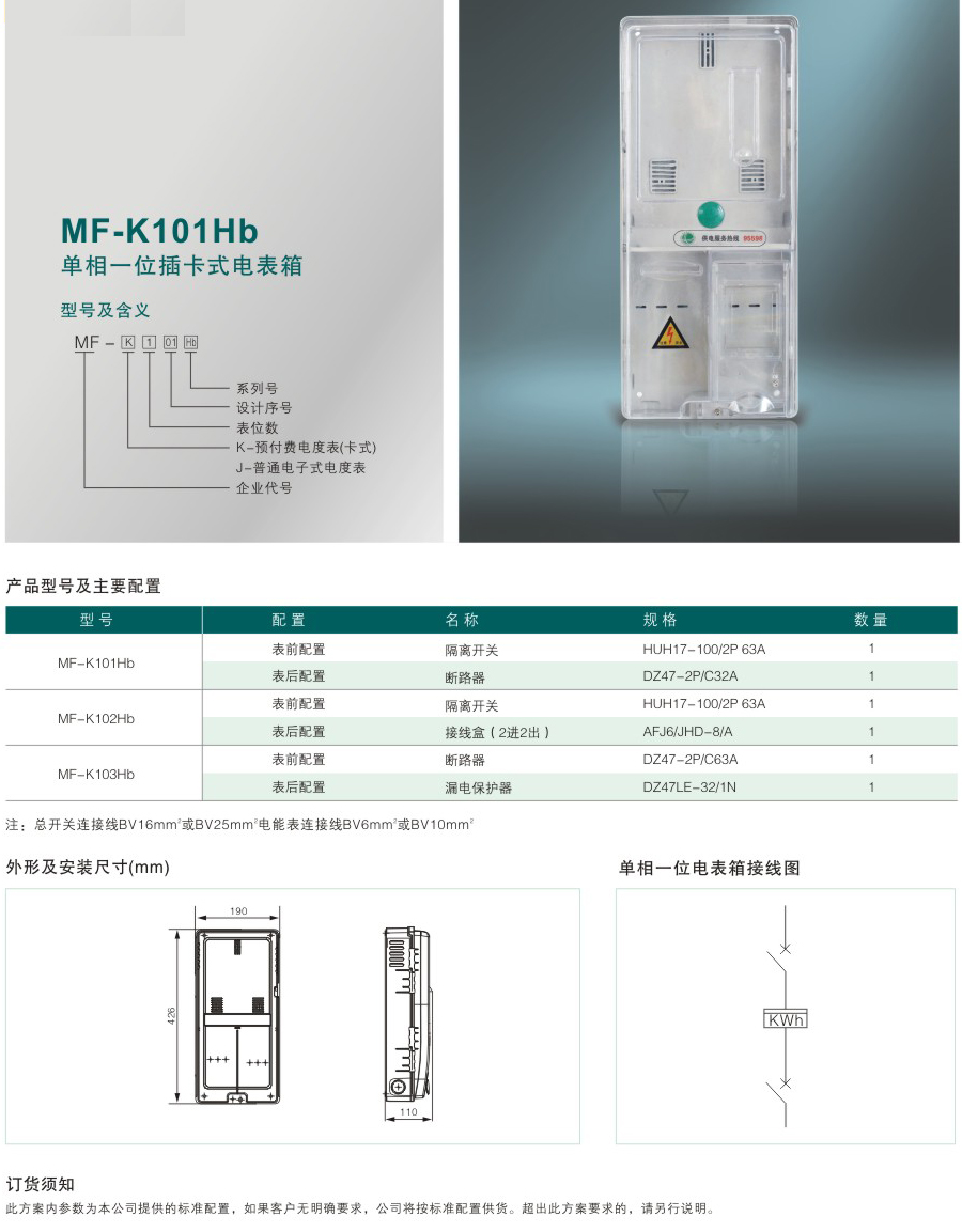 MF-K101Hb 單相一位插卡式電表箱