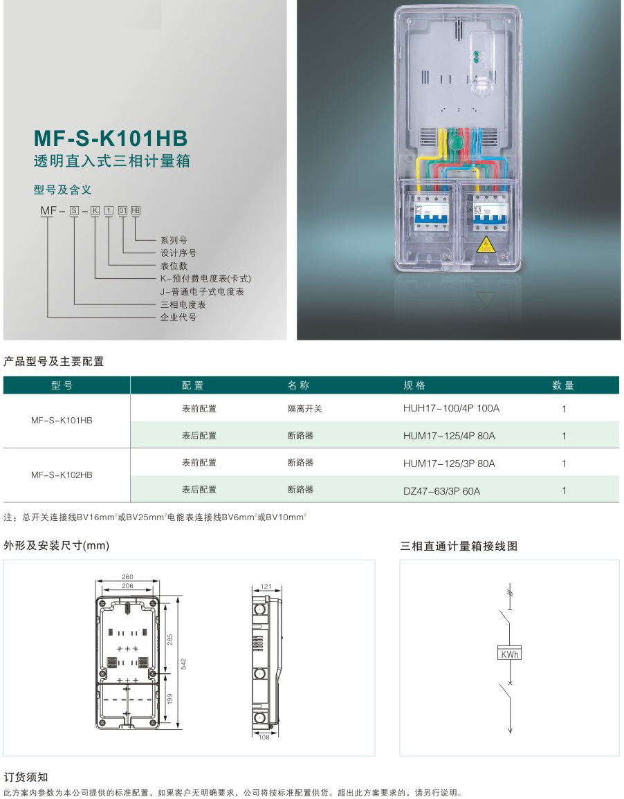 MF-S-K101FJ 透明直入預付費式三相計量箱