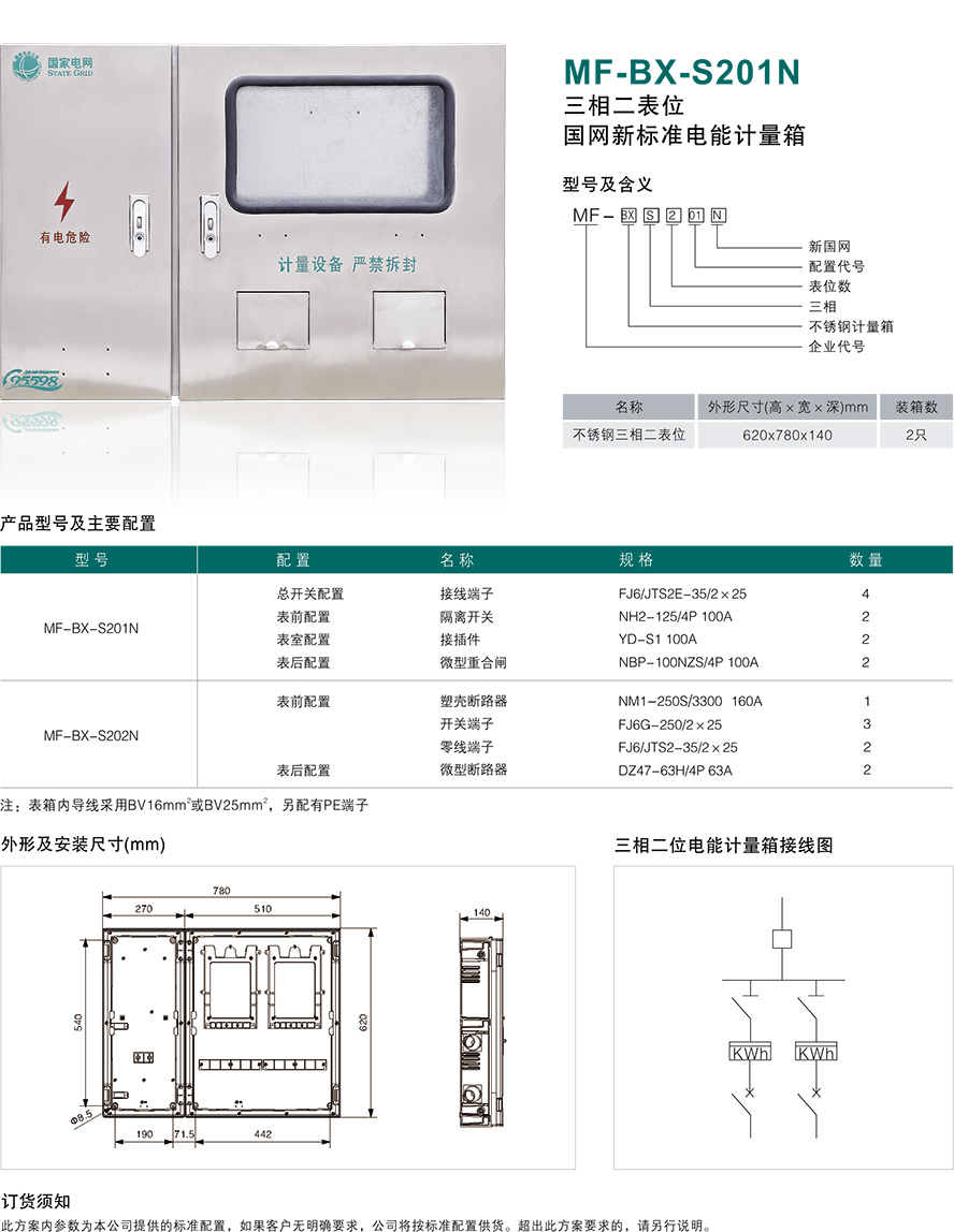 MF-BX-S201N三相二表位國網新標準電能計量箱
