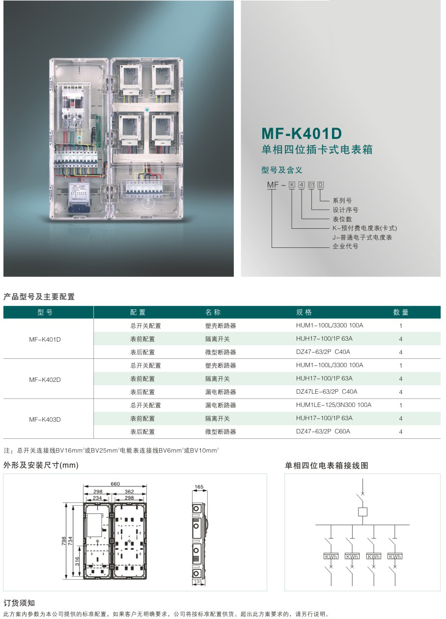 MF-K401D 單相四位插卡式電表箱