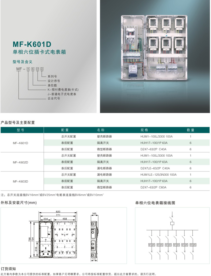 MF-K601AD 單相六位插卡式電表箱上下結構